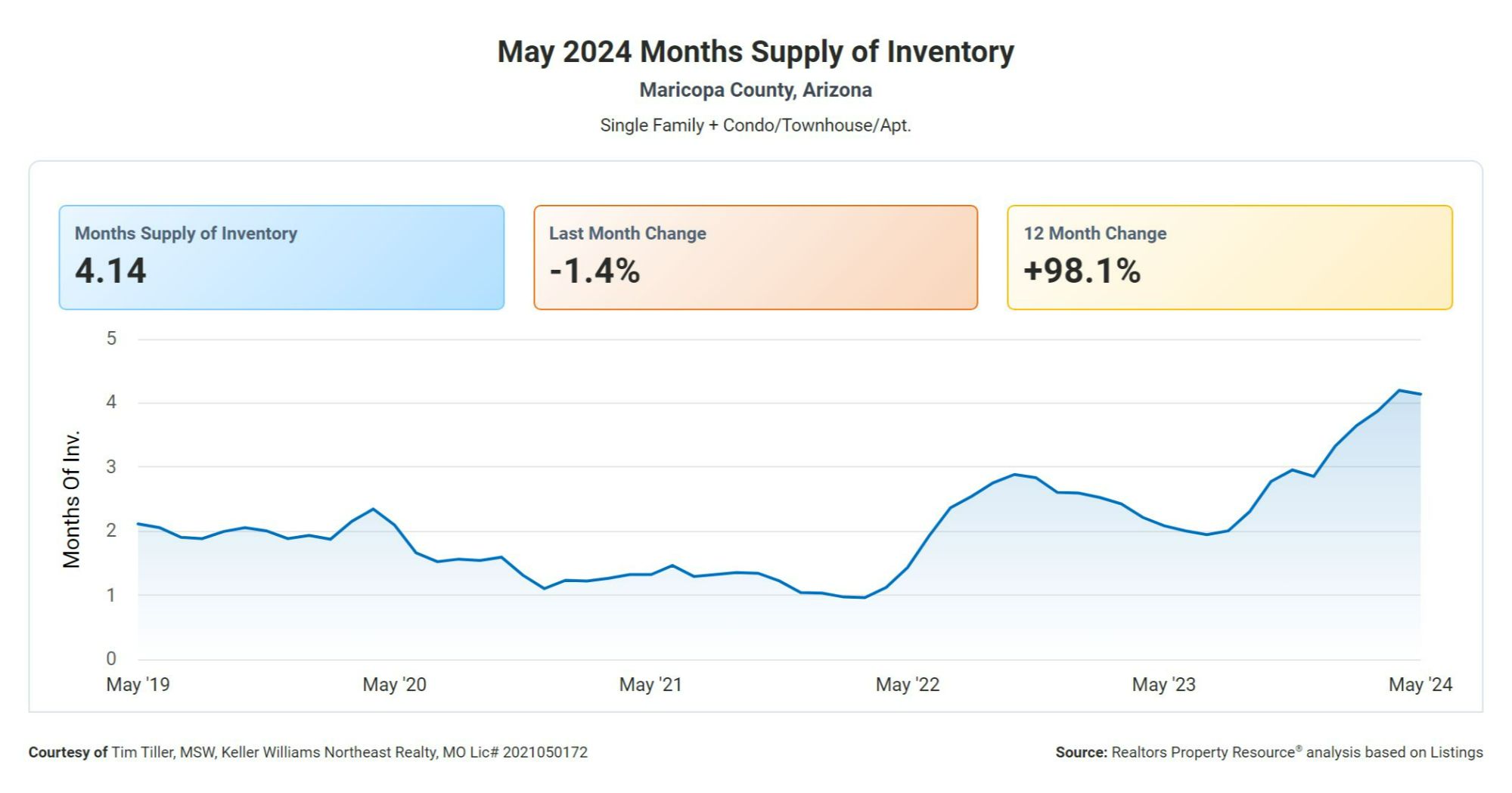 Let's first look at the Months Supply of Inventory, which currently stands at 4.14. This metric indicates how long it would take for all the current homes on the market to be sold, given the current sales pace.